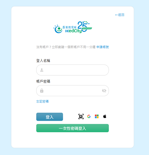 步驟2 | 輸入學生在 Edcity 的登入名稱及密碼 (如學生忘記密碼) 可向班主任查詢![]() |