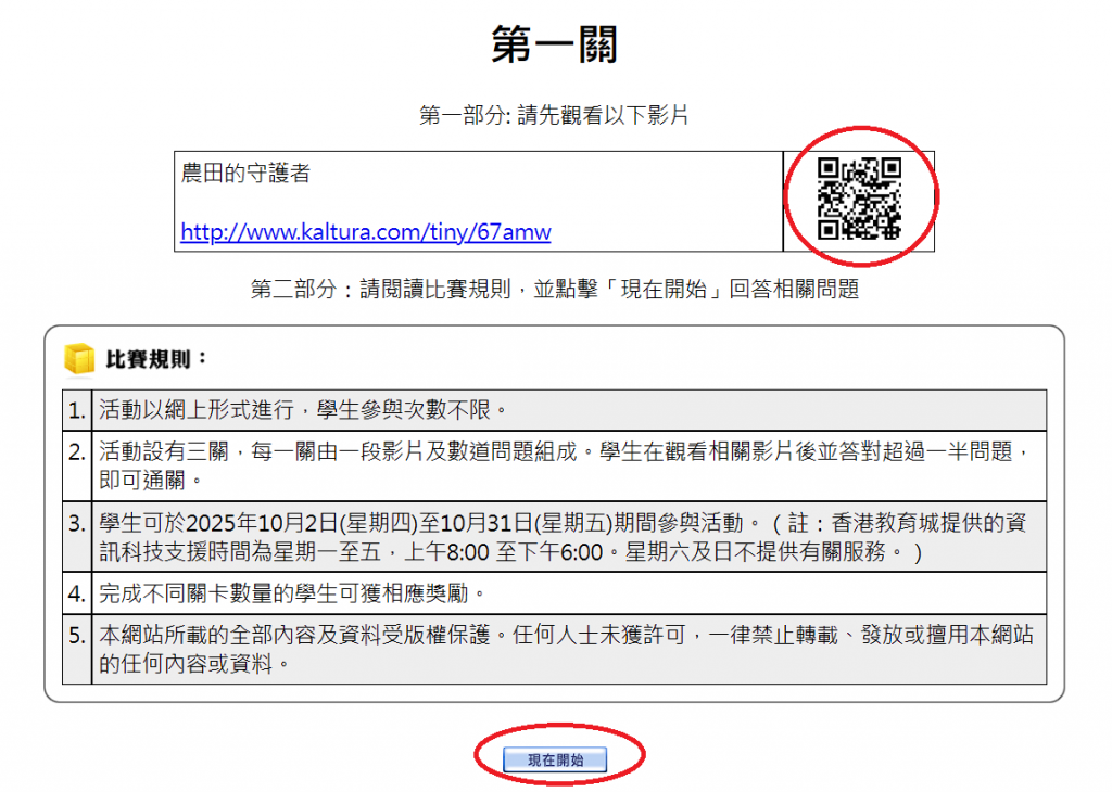 活動設有三關,每一關由一段影片及數道問題組成。學生在觀看相