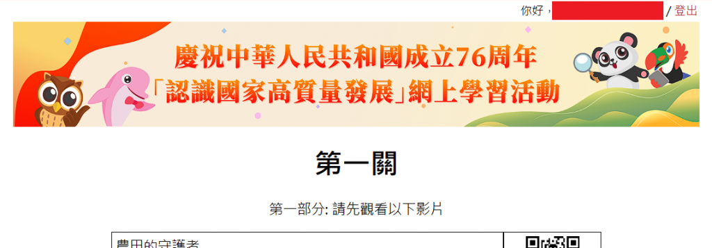 步驟3 | 登入後可在右上角(紅色方格內)看到已登入的學生名字![]() |